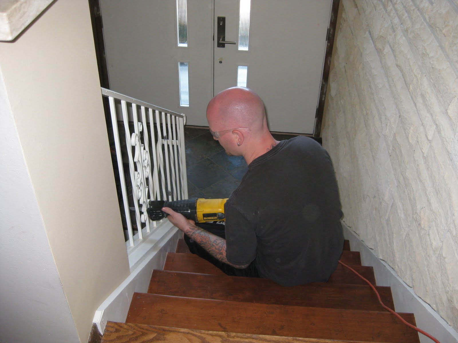 We picked up six pieces of reeded glass from Cline, where they cut it to size for us. It was ready in about 30 minutes, and cost less than $200. Back at home, C started removing the quarter round which held in the amber windows.